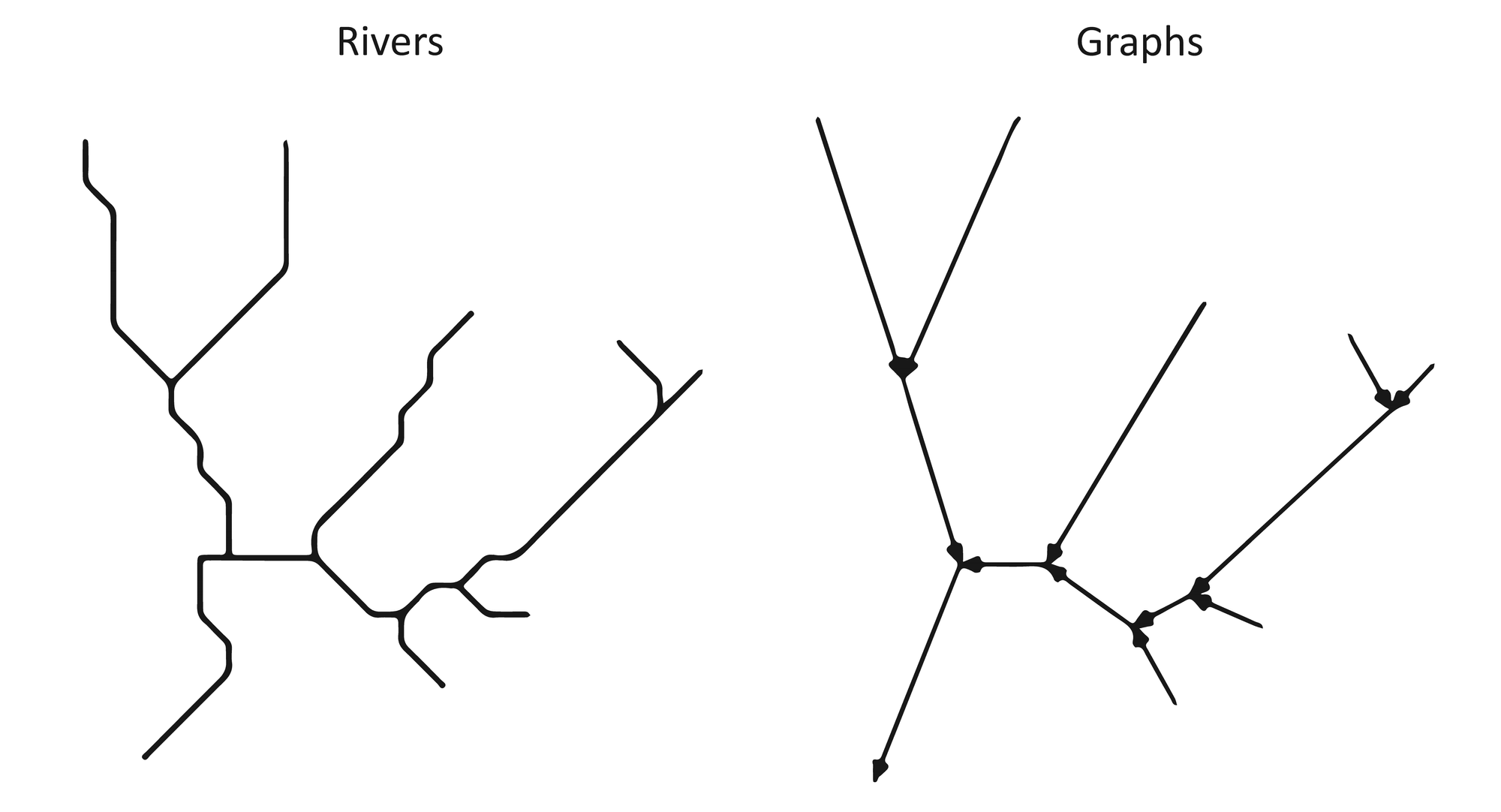 The current way to analyse these rivers results in for loops within for loops within for loops and is quite inefficient. An alternative that I'm exploring is, to borrow from network theory and map rivers as a graph network where river segments represent links and the confluence between them represents the nodes. There are many helpful python libraries for network analysis networkx.